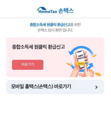 - 초기화면에서 '원클릭 환급신고' 버튼 클릭
