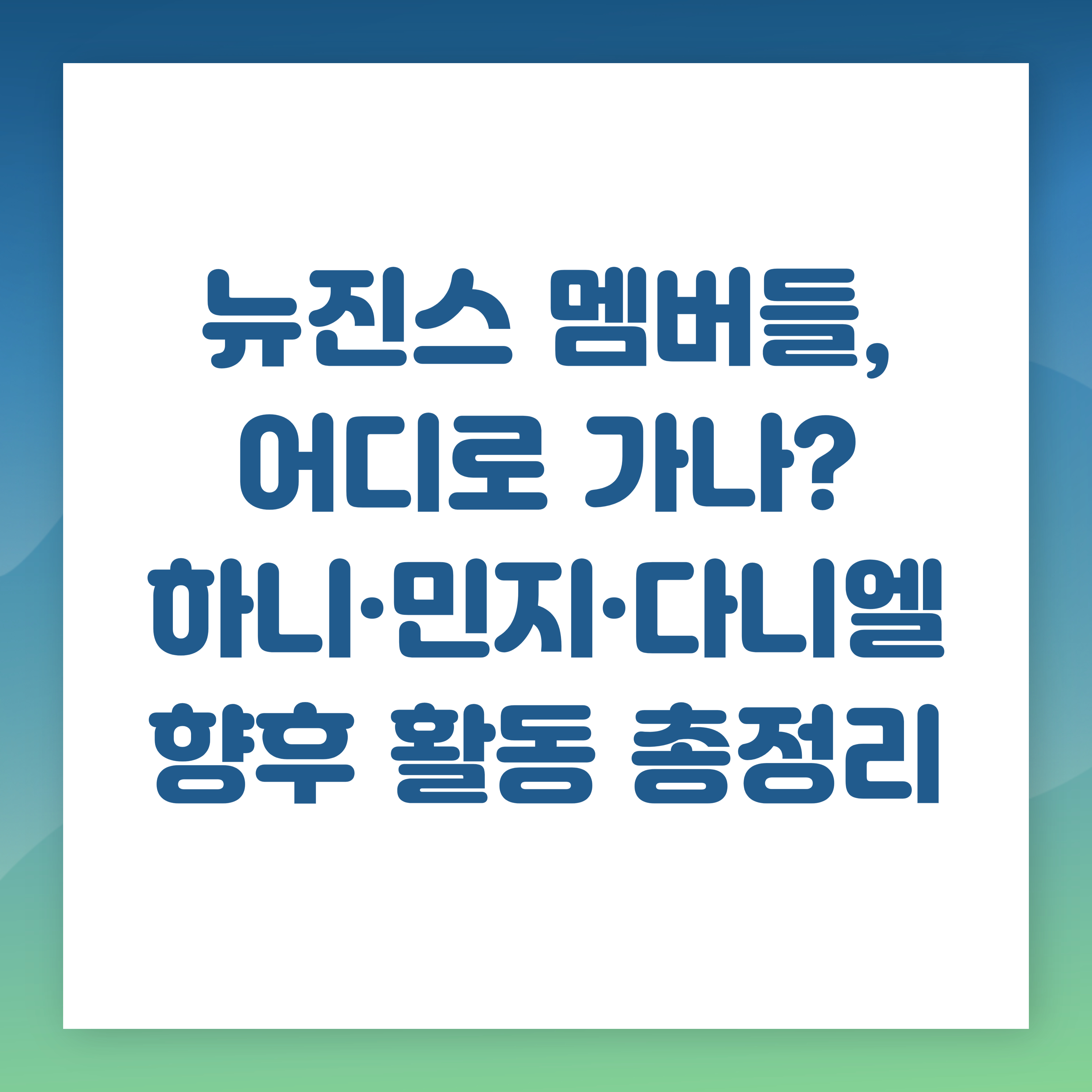 ※ 본 글은 2025년 4월 기준 뉴진스 멤버별 향후 활동에 대한 정황 및 추정 정보를 기반으로 작성되었으며, 향후 공식 발표에 따라 수정될 수 있습니다.