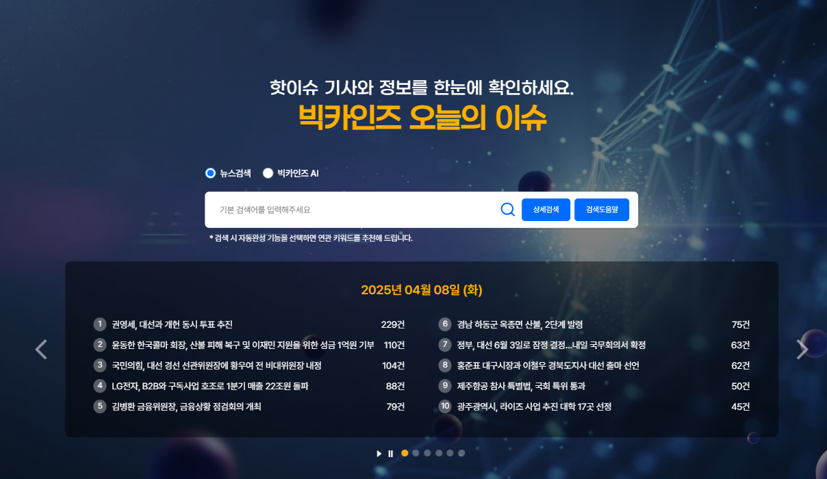 ✅ 빅카인즈 첫 화면 – 오늘의 이슈 Top 10