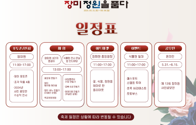 - 주제: 장미나로 여행, 로즈트립 포토존, 정원 전시 및 체험 프로그램