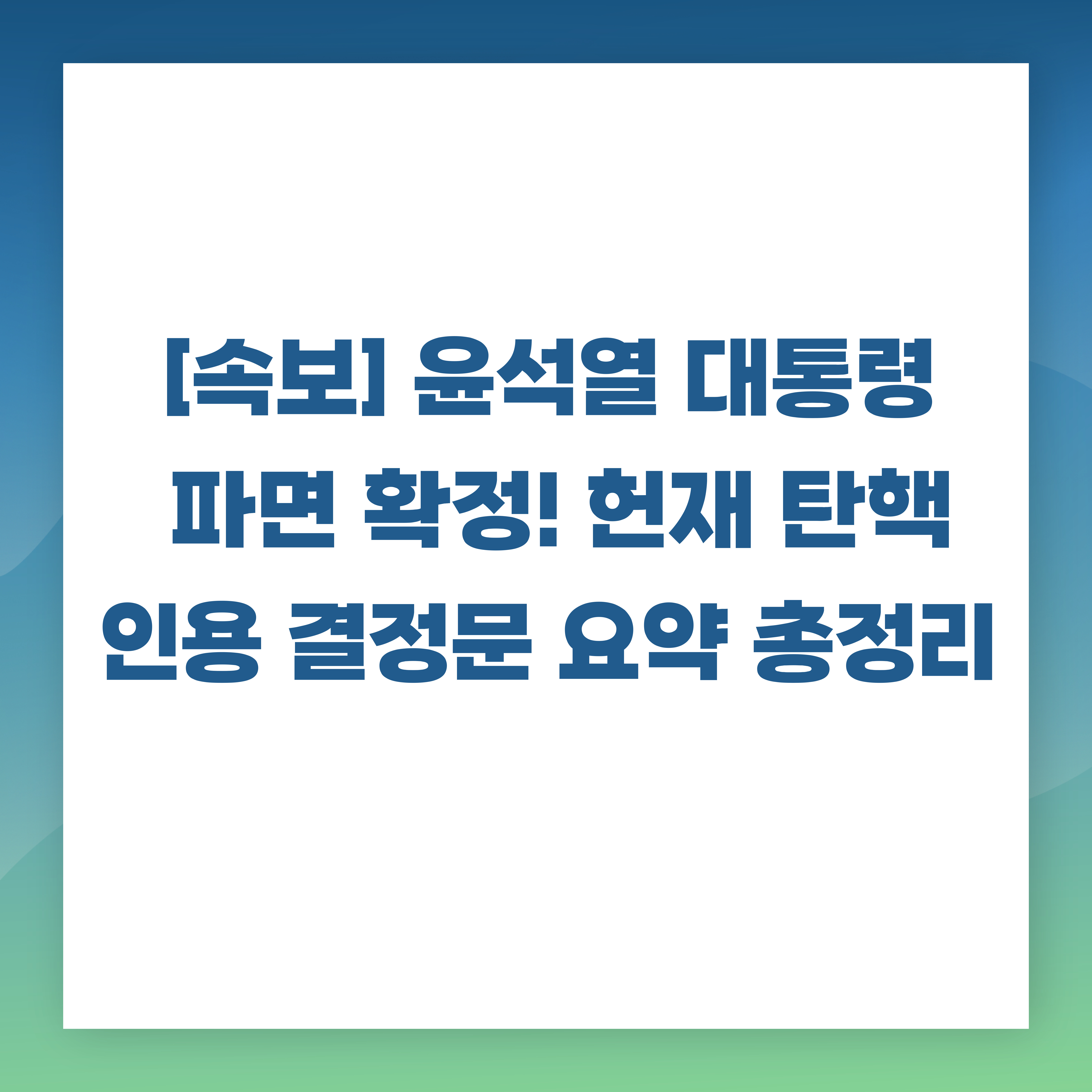 [속보] 윤석열 대통령 파면 확정! 헌재 탄핵 인용 결정문 요약 총정리