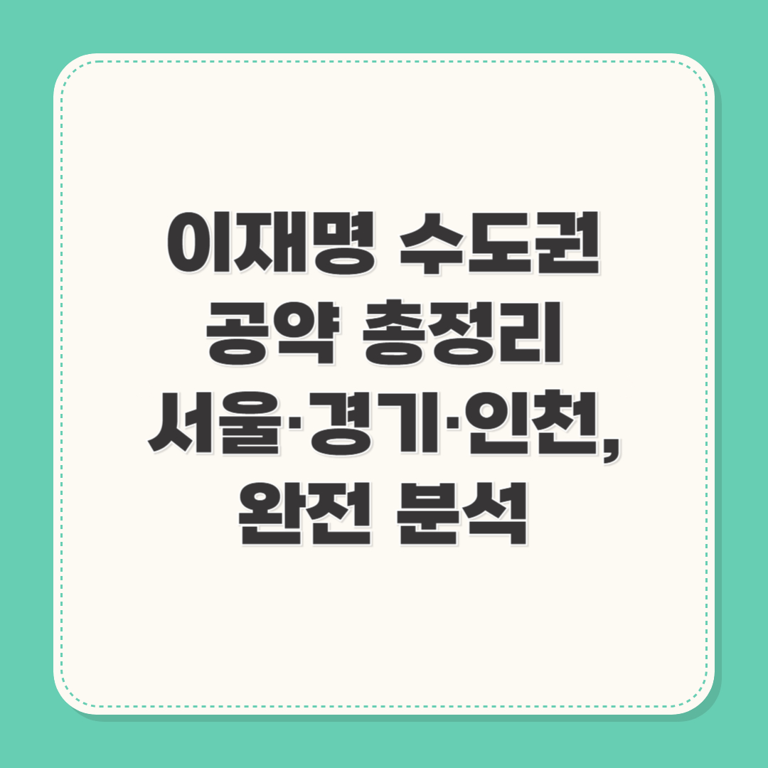 이번 글에서는 이재명 후보가 발표한 수도권 핵심 공약을 서울, 경기, 인천 지역별로 나눠 정리하고,