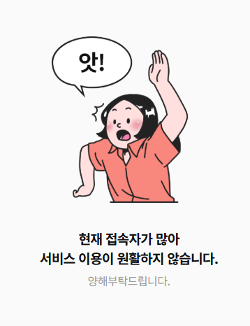 예매 폭주로 인해 사이트 접속이 원활하지 않은 상황입니다.
