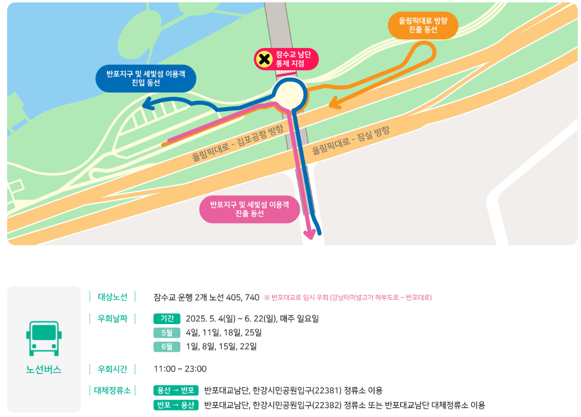 - 장소: 잠수교 전 구간 + 반포한강공원 달빛광장 등 일대