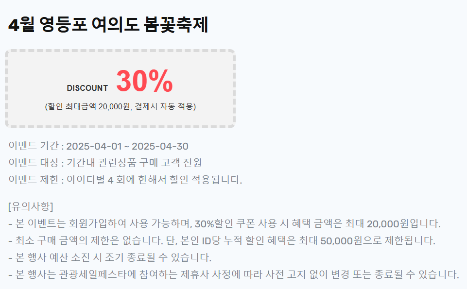 영등포 여의도 봄꽃축제와 함께 다양한 매장에서 특별한 할인과 이벤트를 누려보세요!