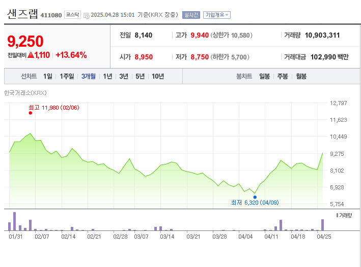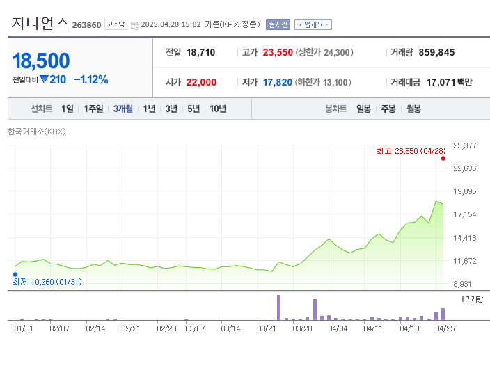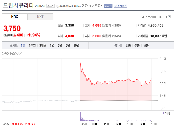 이번 SKT 해킹 사고 이후, 보안 강화 기대감에 전 거래일 대비 30% 이상 급등했습니다.